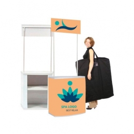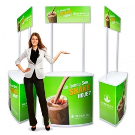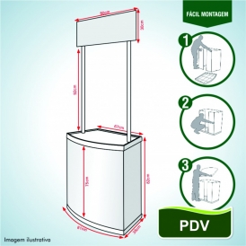 Balcão promocional também conhecido como balcão para degustação ou portátil, foi desenvolvido para quem precisa de praticidade na hora de expor seus produtos, além de ser leve, a montagem é feita em alguns minutos e sem o uso de ferramentas. A estrutura é formada por tampos reforçados em PSAI 3MM (poliestireno de alto impacto) e o corpo feito em PP 2MM (polipropileno), as hastes de sustentação para testeira são feitas em PVC. A junção destes plásticos torna o balcão mais resistente e duradouro.