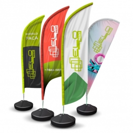O Wind banner é uma ferramenta de marketing utilizada em campanhas promocionais externas, inclusive na rua, parques, praia, bosques, eventos, etc. Com haste giratória, visando sua fácil articulação pode ser confeccionado em poliéster e outros tipos de matéria prima leve.